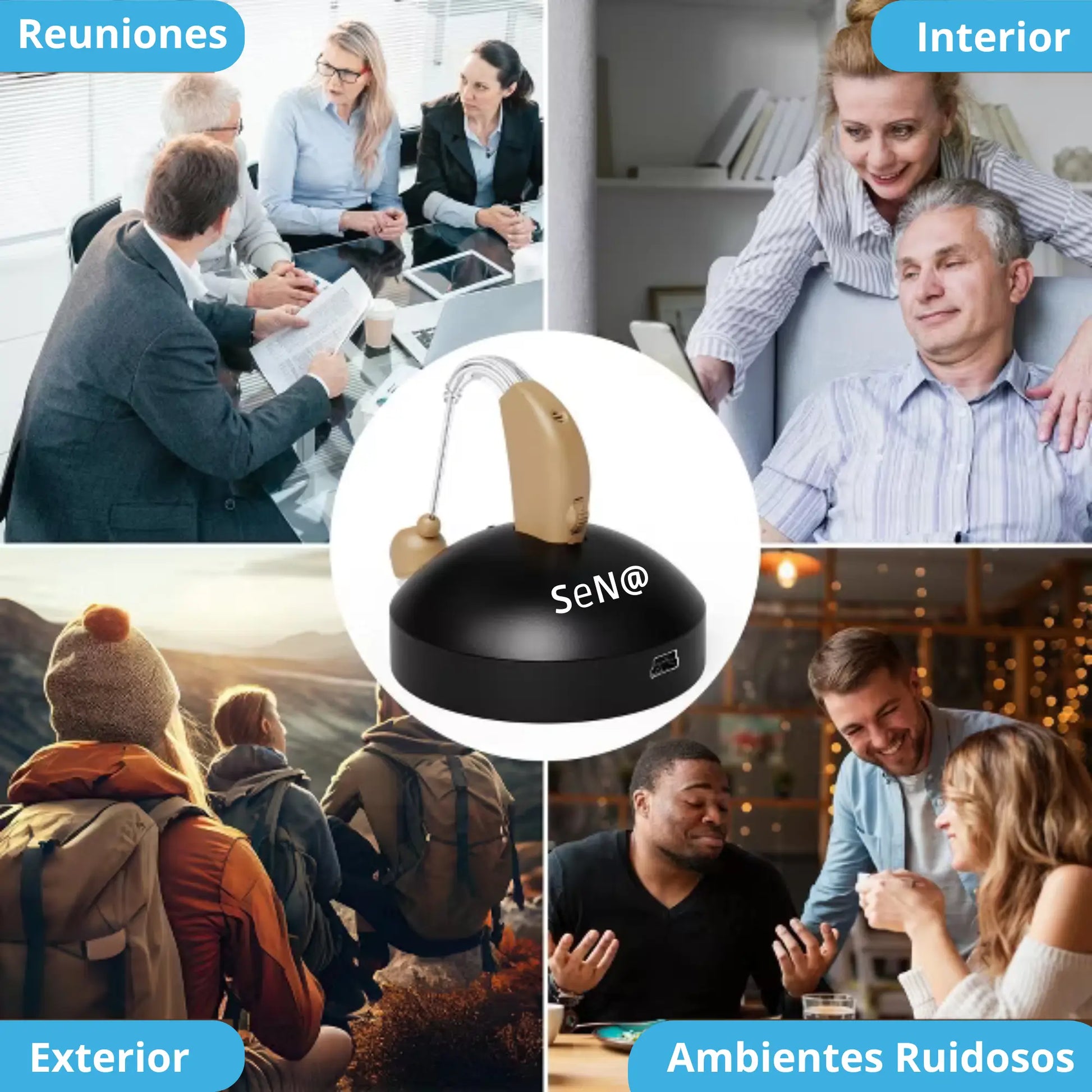 S℮N@ es un audífono amplificador de sonido recargable, creado para ayudarte a escuchar mejor sin esfuerzo, sin incomodidad y sin depender de pilas todos los días